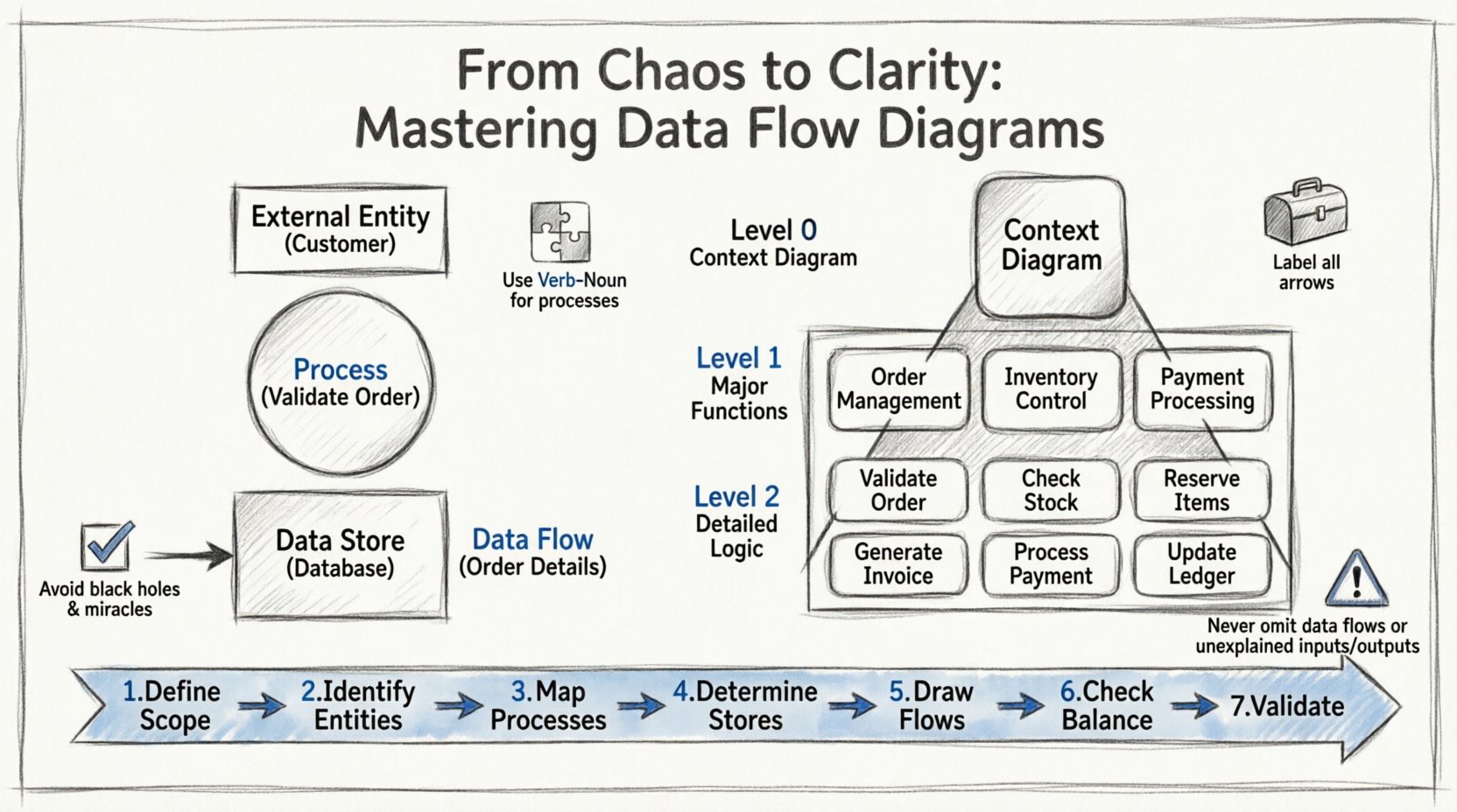Data Flow Diagramming (DFD) remains a cornerstone of structured system analysis. It provides a visual representation of how information moves through a system, identifying processes, data stores, external entities, and the data flowing between them. Despite its widespread adoption, creating a precise and functional DFD requires rigorous adherence to established conventions. Deviations from these norms